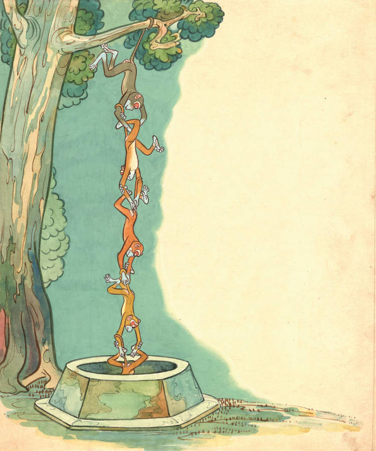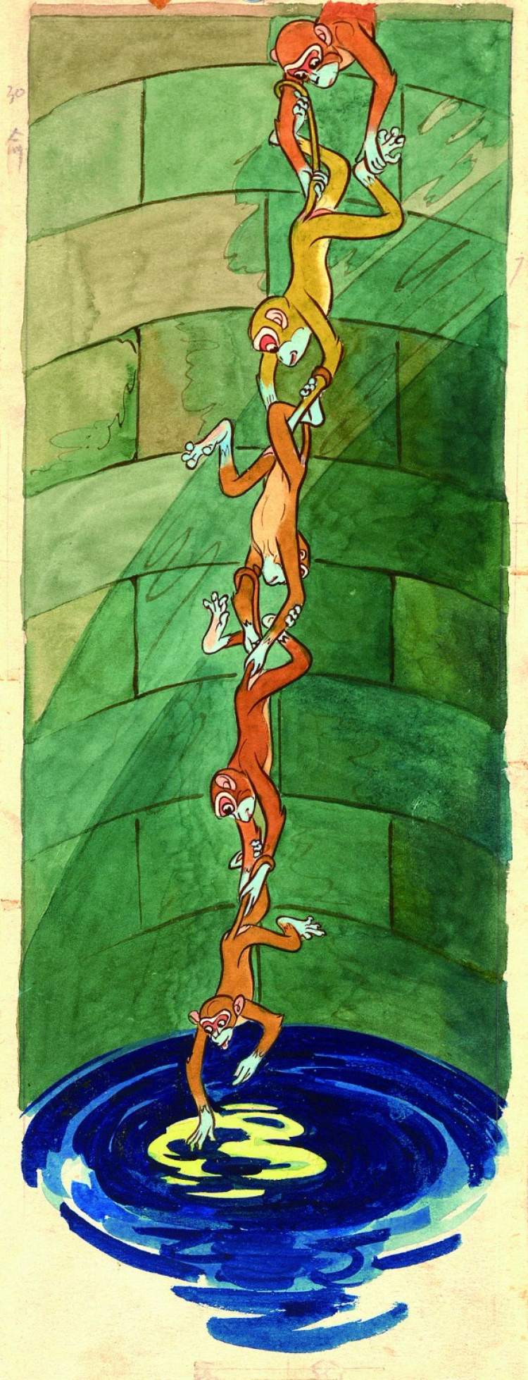 万籁鸣先生创作的“猴子捞月”,能瞥见《大闹天宫》中美猴王的雏形▼