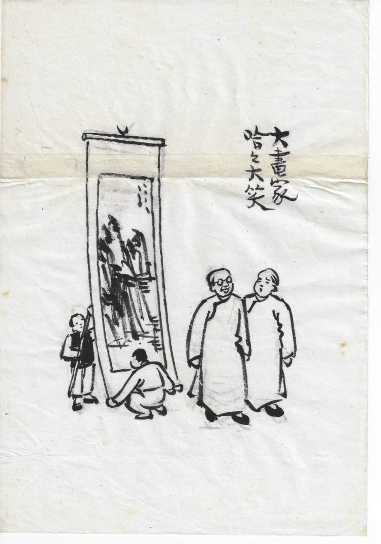 中国动画电影代表作《哪吒闹海》总设计师张仃的水墨手稿《儿童劳军》▼