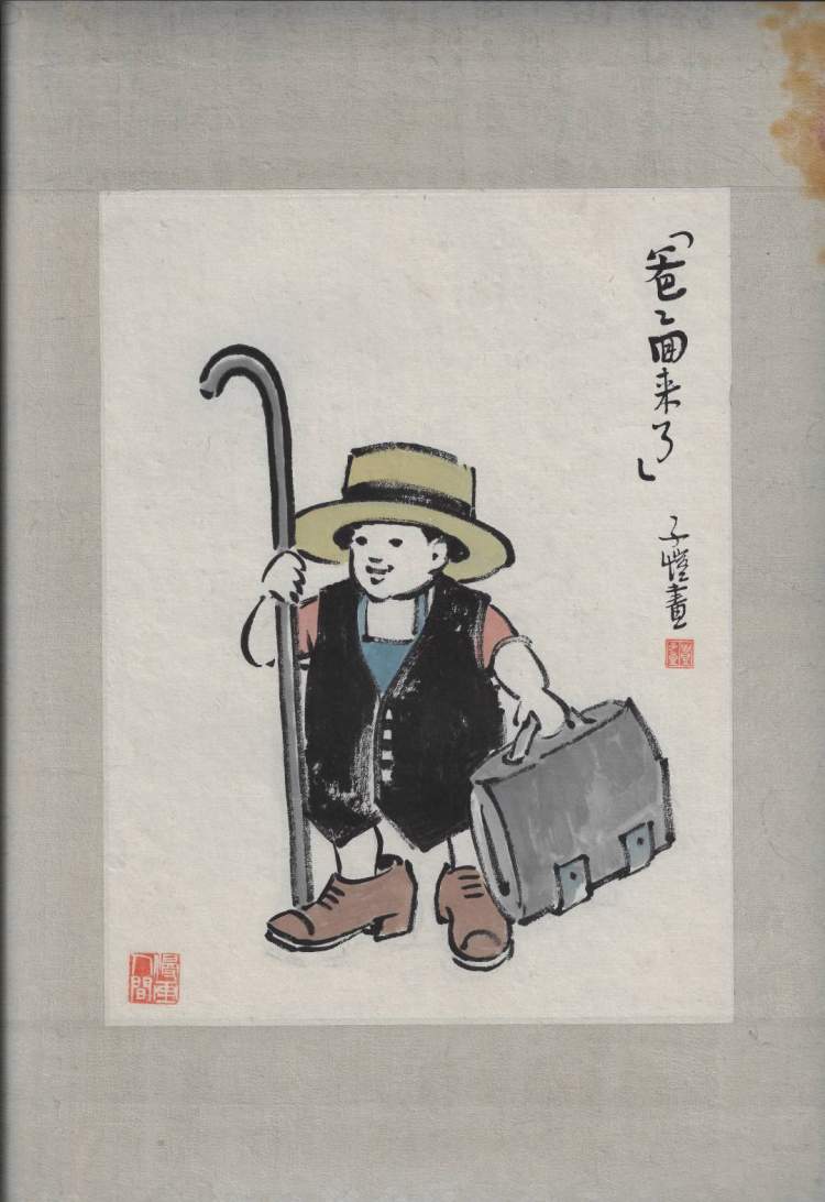 让我们先来看看《百年国漫大展》上领衔主打的丰子恺作品。这是一套20幅丰子恺先生赠予幼子丰新枚的儿童插画,借展自上海丰子恺研究会,其中4幅系首次向公众展出▼