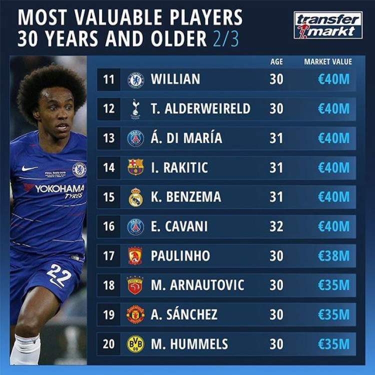 北京时间今天凌晨,德国转会市场网站公布了30岁以上球员身价排行榜,梅西、C罗、奥巴梅扬分居前三,近期与苏宁和国安传出绯闻的贝尔排名第七,而昨夜刚刚在上港客战重庆的比赛中上演一传一射的奥地利国脚阿瑙托维奇也出现在了这份榜单中。