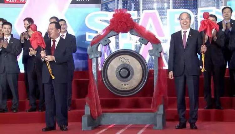 中国证监会主席易会满、证监会副主席方星海等出席科创板开始仪式。上海市市长应勇致辞祝科创板开市大吉。证监会副主席李超表示,千里之行始于脚下,祝愿科创板行稳致远,茁壮成长。开盘前,25家科创股公司十位董事长上台签约,中微公司董事长尹志尧代表25家企业发言时指出,科创板将在中国从制造大国走向制造强国中发挥巨大作用,希望大家合作共赢,做深化改革的创新者。李强、易会满一起鸣锣开盘。