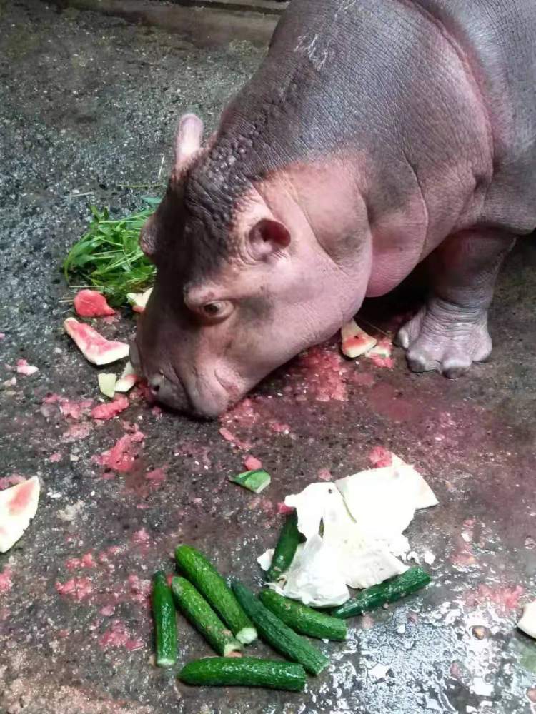 还有一大消暑法宝是什么呢?这就是又圆又大的西瓜呀!除了解渴消暑,西瓜中还富含多种维生素和矿质营养元素,能满足河马的多种营养需求,所以是河马防暑降温最好的“保护伞”。