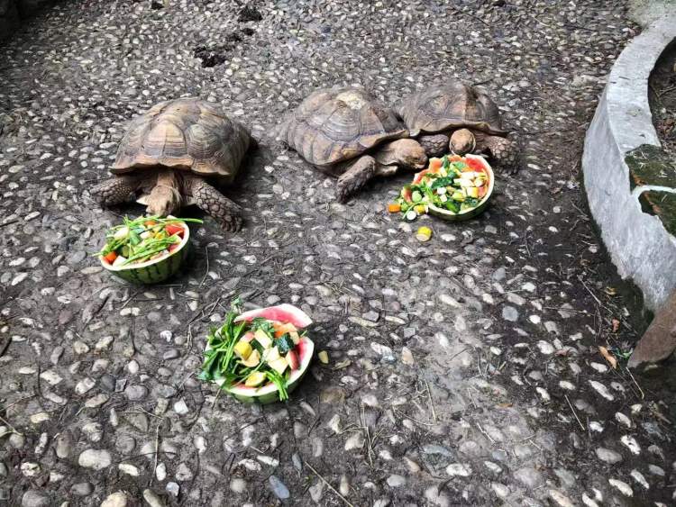 此外,动物日常食谱也做了一定的调整,增加了多汁类水果如番茄、西瓜等,在高温季节能为他们补充消耗的水份和维生素,达到体内水电解质平衡,助其安然度夏。