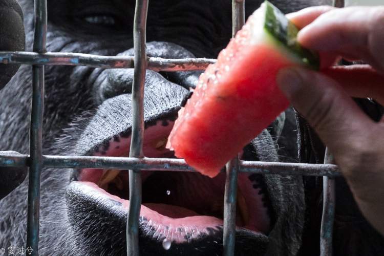 上海动物园这几日每天供动物食用的西瓜达到120斤,到极端高温时,西瓜用量将达到300斤左右,同时夏季每日提供给动物的蔬菜也达10多种,500~800斤。