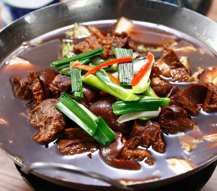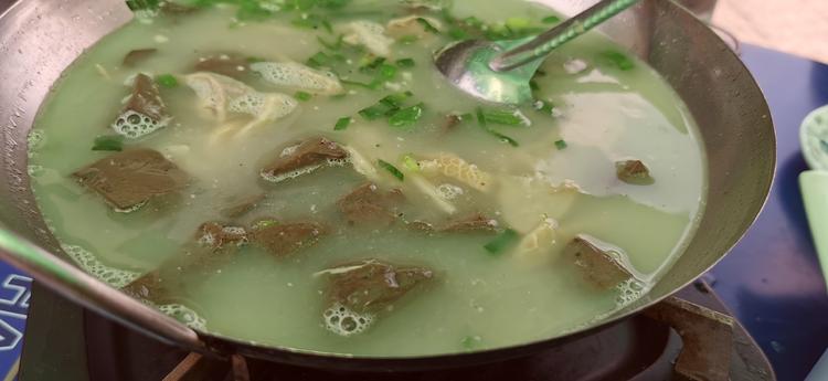 还有羊血羊肚煲汤,真能感受到一个“鲜”字。羊血和嫩豆腐的口感类似,貌不惊人的一锅汤真能吃出惊喜。