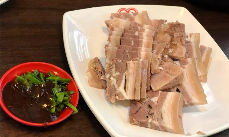 除此之外,每桌必点的还有白切羊肉。厚切的白切羊肉,精肥刚好,入口很绵,搭配咸味酱油或者甜面酱均可,非常爽口,相信周到君,这道白切羊肉一定能让你吃得很满足。