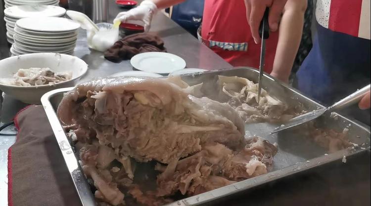 李记羊肉馆是其中推荐数最多的一家。热气白切羊肉蘸点酱油吃下去,没什么膻味,倒是肥瘦相间,瘦肉有嚼劲,夹杂着软嫩的肥肉和有弹性的羊肉皮,口感颇为丰富。