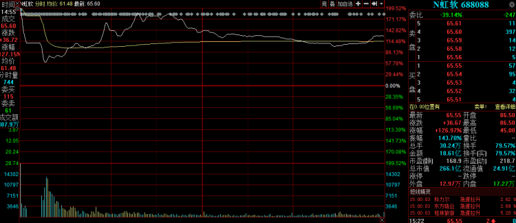 根据规则,科创板股票实施盘中临时停牌机制:当股票的盘中成交价较当日开盘价首次上涨或下跌30%和60%时,该股票将被临时停牌10分钟,如停牌时间跨越14:57,则当日14:57复牌。