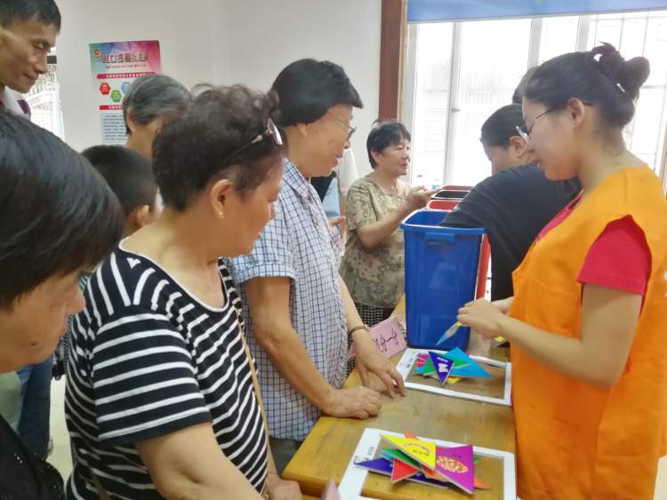在活动现场,居民们积极参与垃圾分类互动体验游戏,有的玩七巧板,有的根据小卡片上的内容进行垃圾分类投放……趣味游戏结束后,居民还能凭借搜集到的笑脸贴纸兑换一份小礼品。