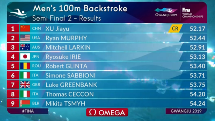 在昨天的半决赛中,徐嘉余以52秒17的成绩打破了赛会纪录,以第一名的位置进入决赛。