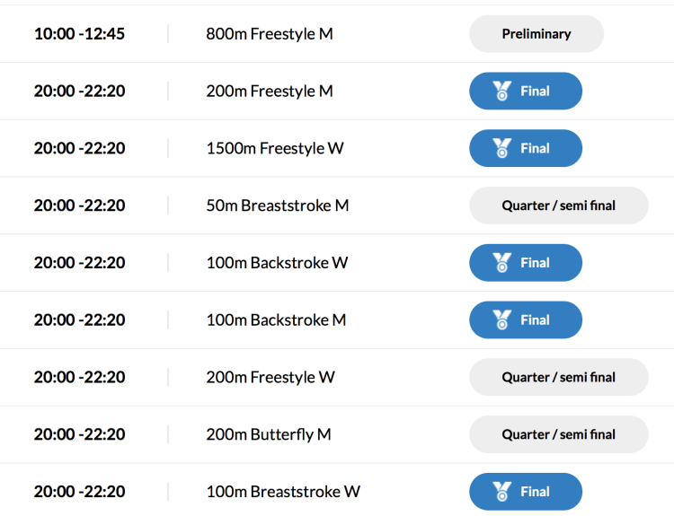 国际泳联公布的(23日)决赛完整赛程