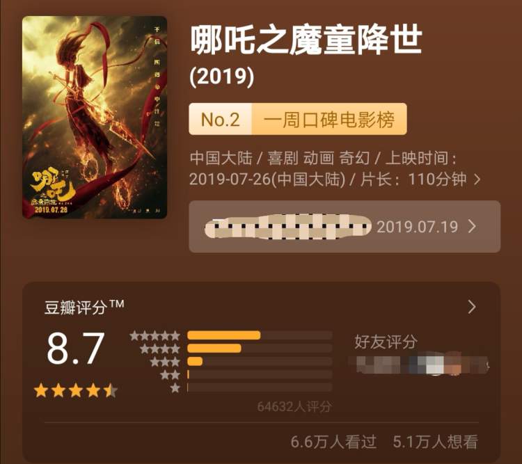 这几天,一部名叫《哪吒之魔童降世》的国产动画横空出世,还没有公映,豆瓣评分已经达到8.7分,超越了此前现象级爆款《西游记:大圣归来》(8.3分)!