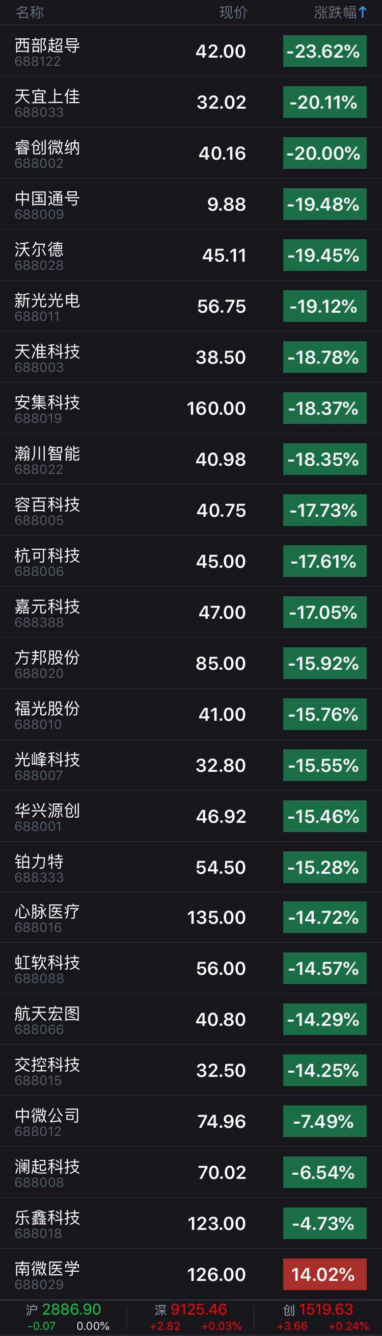 7月23日是科创板开市第二日,由于受T+1限制,次日开盘和交易备受市场瞩目。集合竞价期间,25只个股除了南微医学涨14%以外,其余全部翻绿。前新三板公司西部超导跌幅最大,一度达到23.62%;睿创微纳跌20.28%;天宜上佳跌20.11%;科创板市值“一哥”中国通号跌19.48%。这些个股价格快速回归理性。