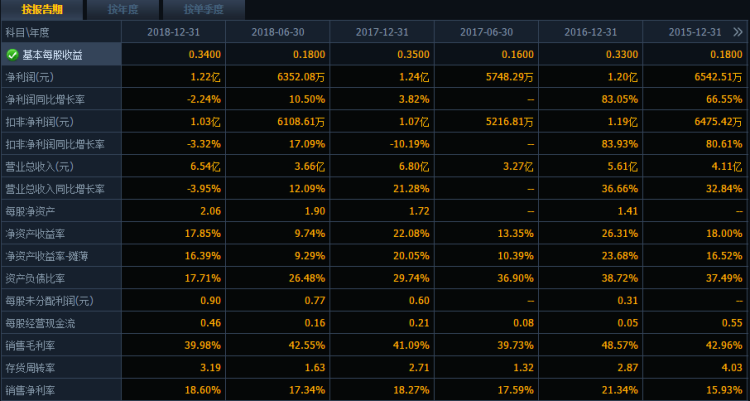 据了解,神马电力主要从事电力系统变电站复合外绝缘、输配电线路复合外绝缘和橡胶密封件等产品的研发、生产与销售。公司2018年营业收入6.54亿元,同比下降3.95%,净利润1.22亿元,同比下降2.24%,每股收益0.34元。公司预计半年报净利润5618.64万-6401.64万元,下降幅度为11.55%-0.78%,每股收益0.16元-0.18元。