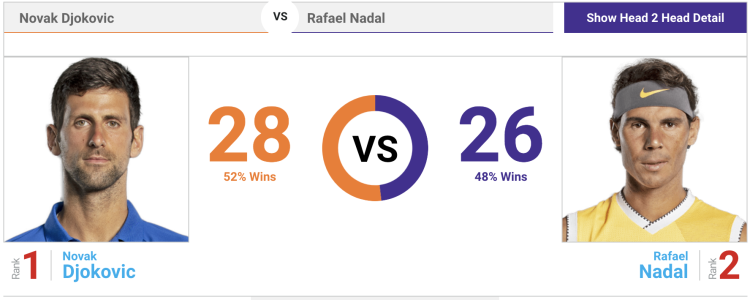 德爸认为支持他的观点的论据还有,在费纳德三巨头之间的对决中德约战绩最好,他以26-22领先费德勒,以28-26领先纳达尔。