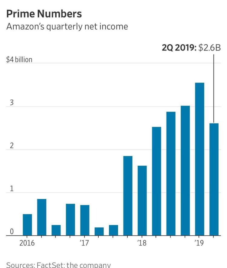 7 月2 6 日(美东时间 7 月 25 日下午 4:00 ),亚马逊于收盘后,发布了 2019 年第二季度财报(截至 6 月 30 日)。
