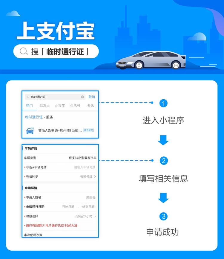 周到君获悉,从2019年7月29日(下周一)起,杭州市将实施“部分开放非浙A号牌小型客车工作日高峰时段在错峰限行区域内通行” 便民利民措施,只要在浙里办App或在支付宝上申请“临时通行证”,即可不受限行路段管控。