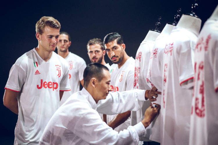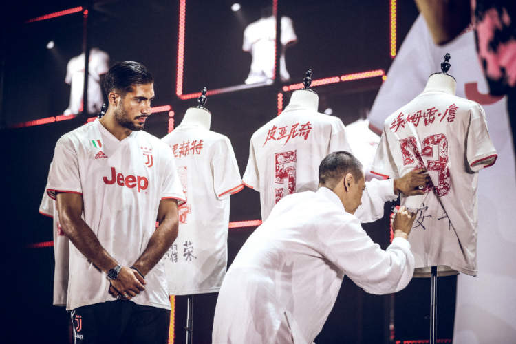 现场互动环节中,一组融合中国元素的定制球衣也亮相现场,成为当晚的点睛之笔。定制球衣的数字融合了十二生肖元素与传统剪纸的艺术表达,球员姓名也以书法形式呈现。与此同时,书法艺术家现场挥毫,为远道而来的尤文图斯球员在球衣上写下新赛季祝福,将这份特别的礼物赠予球员,作为对此次中国之行的特别纪念。