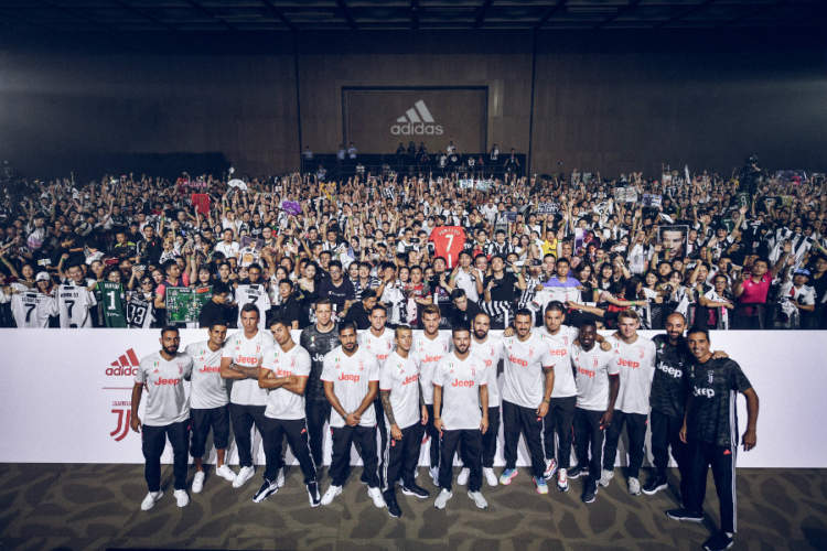 7月25日下午,C罗、被尊称“皮队”的皮亚尼奇、布冯等超级明星率尤文图斯全队,出席在上海跨国采购会展中心举行的夏练国度-尤文图斯2019-20赛季全新客场球衣全球发布会,让全场气氛达到沸点!