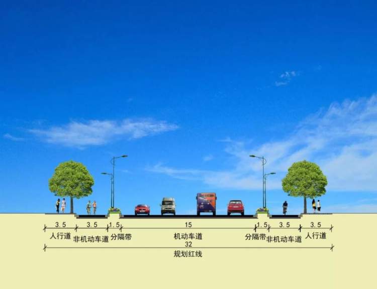 都市路将成为“机非”分隔沥青混凝土道路,车道规划为双向4快2慢机非分离,呈南北走向,道路全长391.12米,道路等级为城市支路,设计速度为每小时40公里,规划红线为32米。