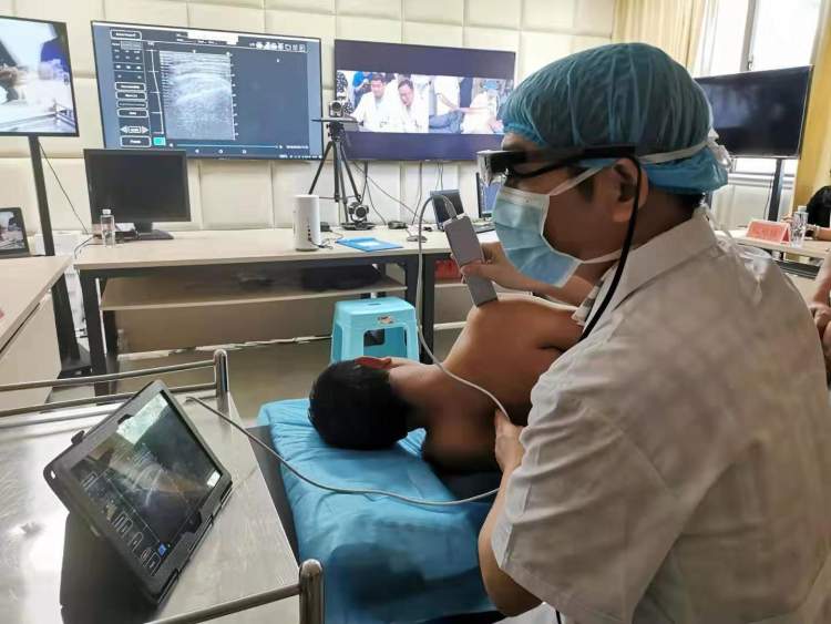 此次远程会诊利用了目前先进的VR和AR 技术,通过5G的无迟延传输,开展了远程会诊、5G移动掌上超声、中医特色推拿诊疗技术的即时推广应用等,实现了现代科学技术与传统中医技术的完美融合。