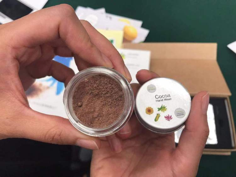 而这款“柔滑可可洗手粉”也是混合了向日葵花籽油、天然软磷脂、麦芽糖糊精等搅拌、过滤制成。“在我们的’护肤品小册’里专门将产品中所含的原料、制作步骤都罗列了出来。大家感兴趣的话,在家里DIY也能够做出来。”