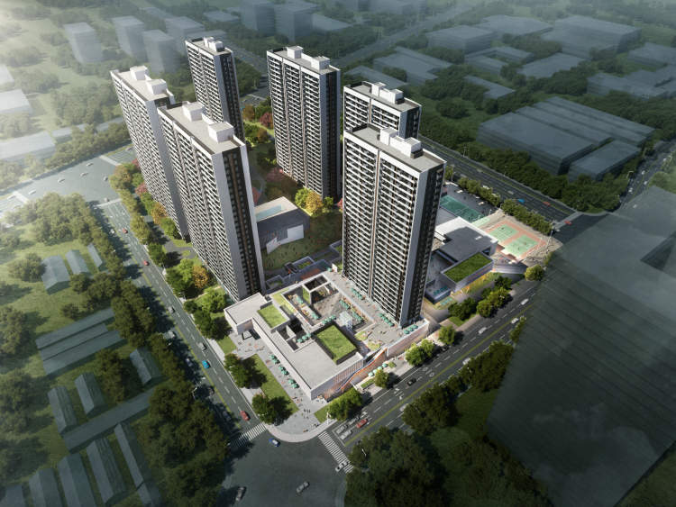 项目有6栋住宅楼2562户,1栋集中商业楼,1栋主题商业楼,1个社交中心,打造“商业让都市生活近在咫尺”的理念,呈现的是一个完整的生活社交平台,将住房、办公空间、社区配套商业相结合。