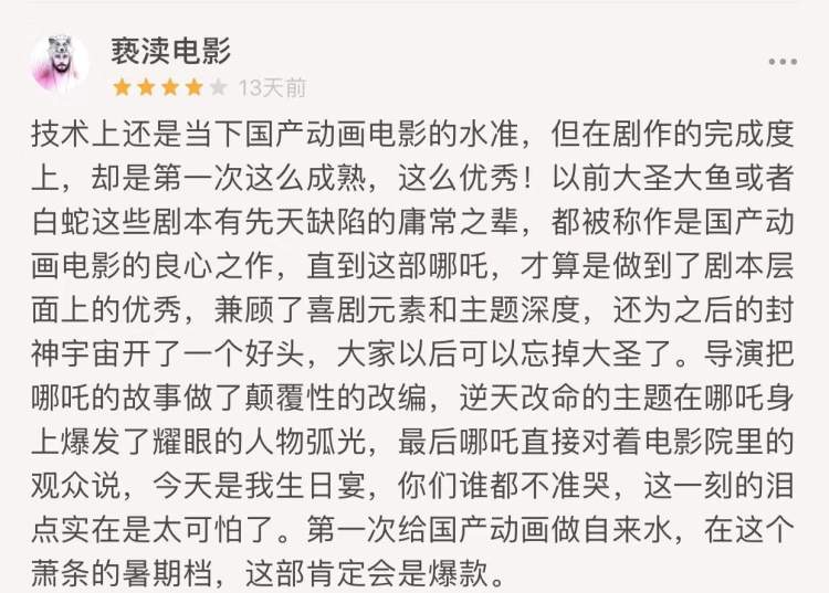 影片连续两日登上微博热搜,勾起了很多人的童年回忆,观众看过之后都自发的安利给周围的朋友,而在豆瓣等网站上,哪吒被评为了“国漫之光”,好评不断。