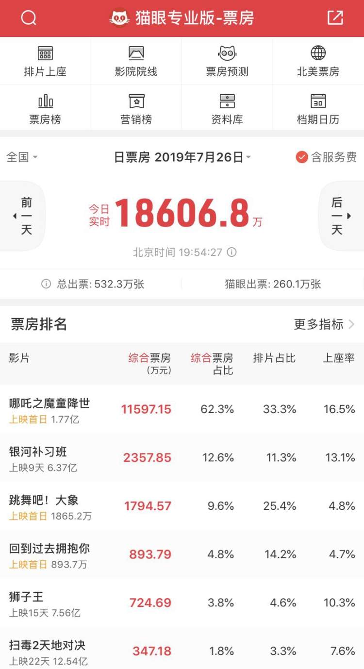国产动画电影《哪吒之魔童降世》于今日上映,仅上映1小时29分影片总票房就突破一亿大关,创下了动画电影最快破亿纪录!超百万人次第一时间观看了影片,实时票房也位居同期电影第一位!