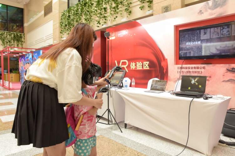 “不忘初心 红色体验”版块:包括红色家族卡通互动人偶;红色VR互动体验;红色漫画趣味填色;革命历史合影墙等,同时设置有奖问答等多个互动体验项目,使现场更加生动、活泼,让观众在互动体验中进一步增进对江西红色文化旅游的了解。