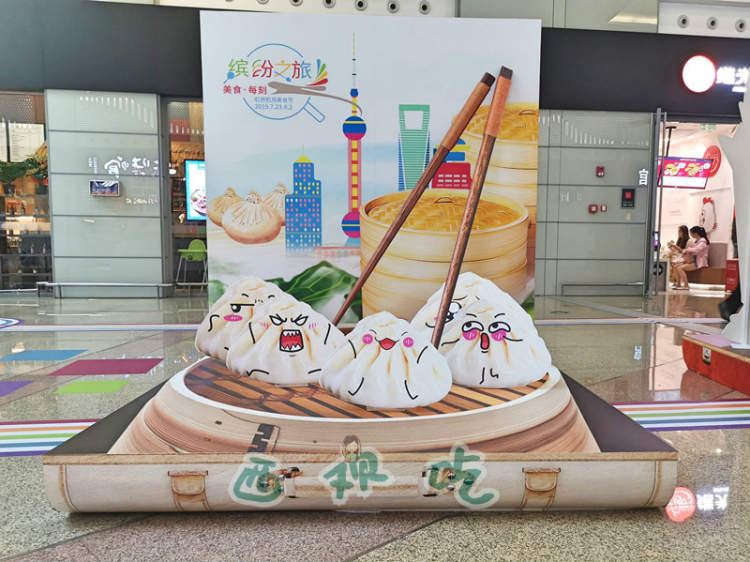 小西一进到美食廊就被拍照打卡装置吸引了目光,