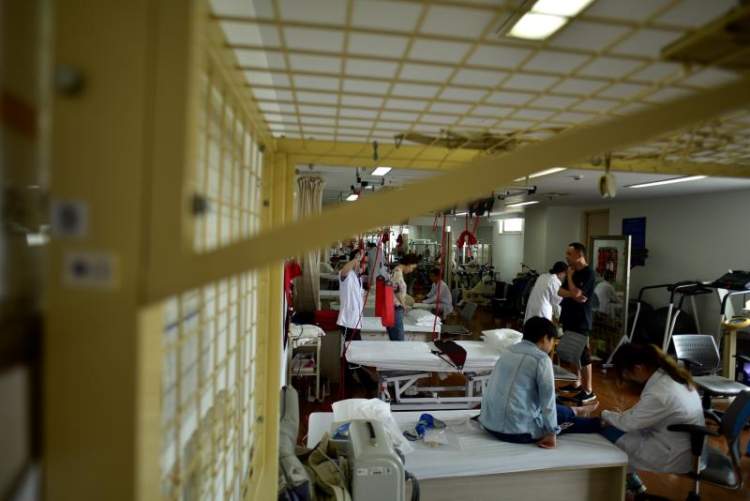 记者在瑞金医院门诊大楼7楼康复中心看到,即使是周六,依然有很多中风、骨折等进行理疗等进行康复治疗。