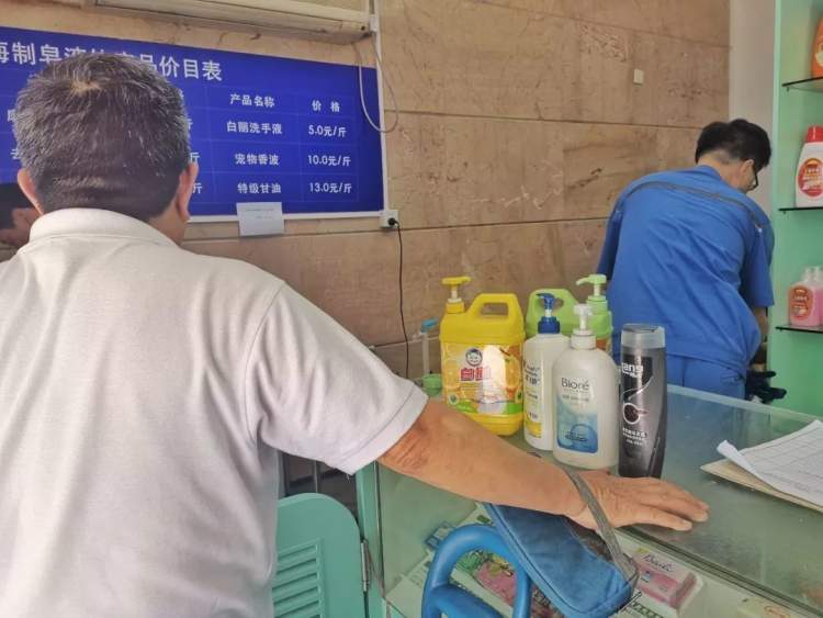 原来,门市部里依旧有零拷洗衣液、洗洁精、洗发水等产品的服务。