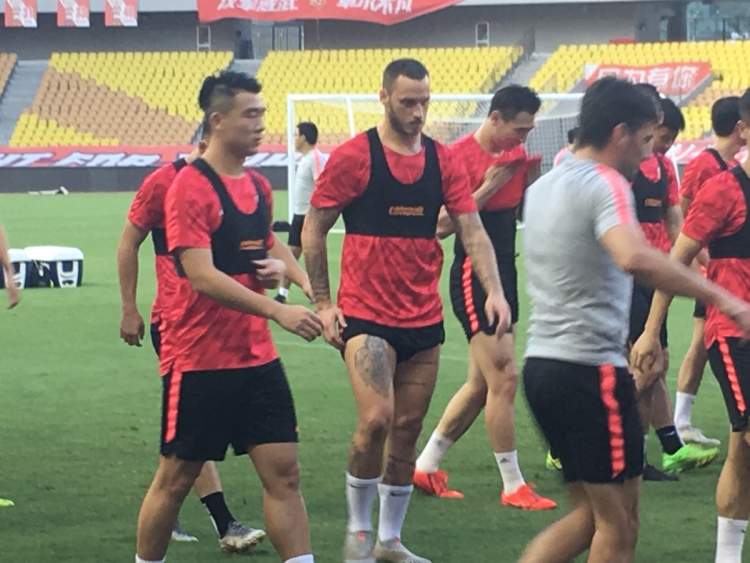 周六晚上,上港队来到球场进行适应场地的训练。相比5月1日在这里踢足协杯的时候,武汉卓尔主场的草皮条件经过整改后已经是大大改善。这也让在重庆客场因为“菜地”而非常不满的上港队主帅佩雷拉心情不错。