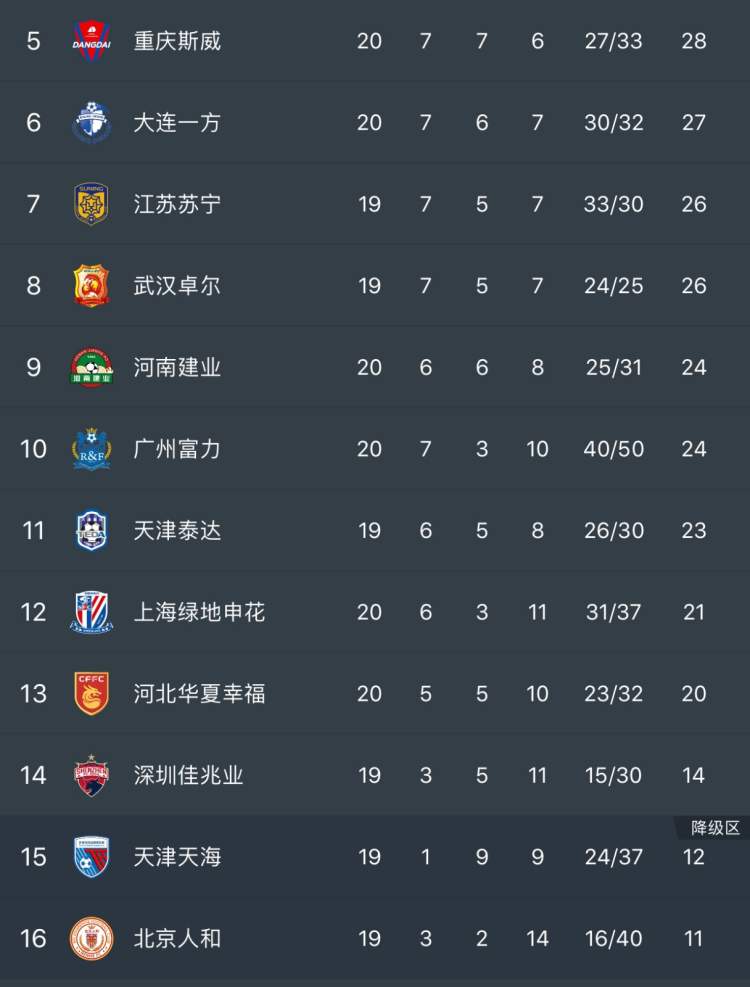 今晚,申花在主场5:3大胜广州富力,在收获联赛三连胜的同时,也将自己的积分提升到了21分,反超了下午刚刚超过自己的华夏幸福。