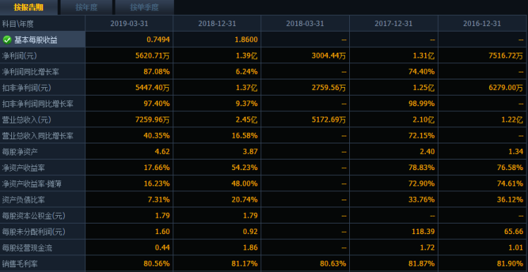 据了解,柏楚电子从事激光切割控制系统的研发、生产和销售。公司2019年1季报营业收入0.73亿元,同比增长40.35%,净利润0.56亿元,同比增长87.08%,每股收益0.75元;公司预计2019年半年报的净利润约为11100万元-12100万元,同比增长约50%-60%。