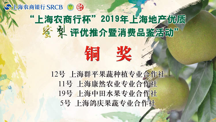 “上海农商行杯”2019年上海地产优质蜜梨评优推介暨消费品鉴活动今天举行,来自魔都9个区从事蜜梨生产的24家企业(合作社)角逐1名金奖、2名银奖、4名铜奖,以及1名“最受消费者喜欢奖”。上海常奉农产品专业合作社种植的蜜梨获得金奖。