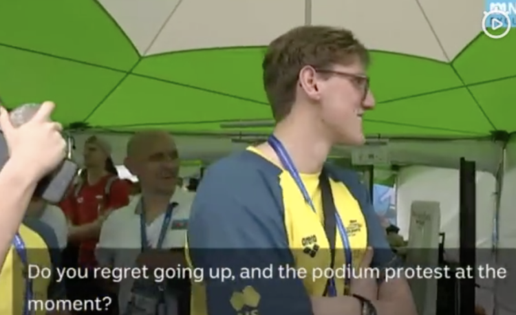 记者接着问道:“你现在后悔自己在领奖台上的举动了吗?”