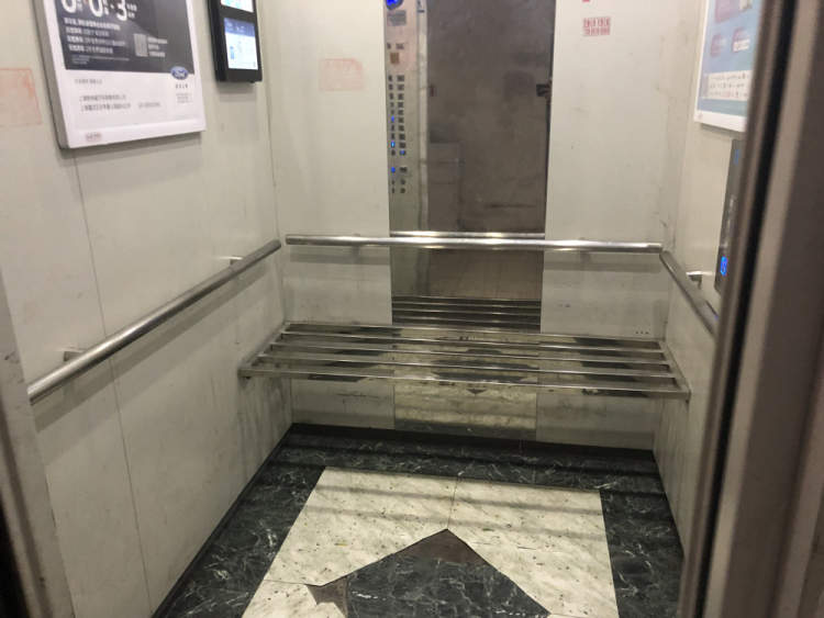 “这也是没办法的办法。”赵经理说,因为不锈钢架座椅占据了电梯里本就狭小的空间,大型电瓶车就没办法推到电梯里了,但有些类似自行车的小型电瓶车还是可以塞进电梯,有人为了带电瓶车上楼,还会把电瓶车的前轮抬到钢架上,斜着塞进去”。