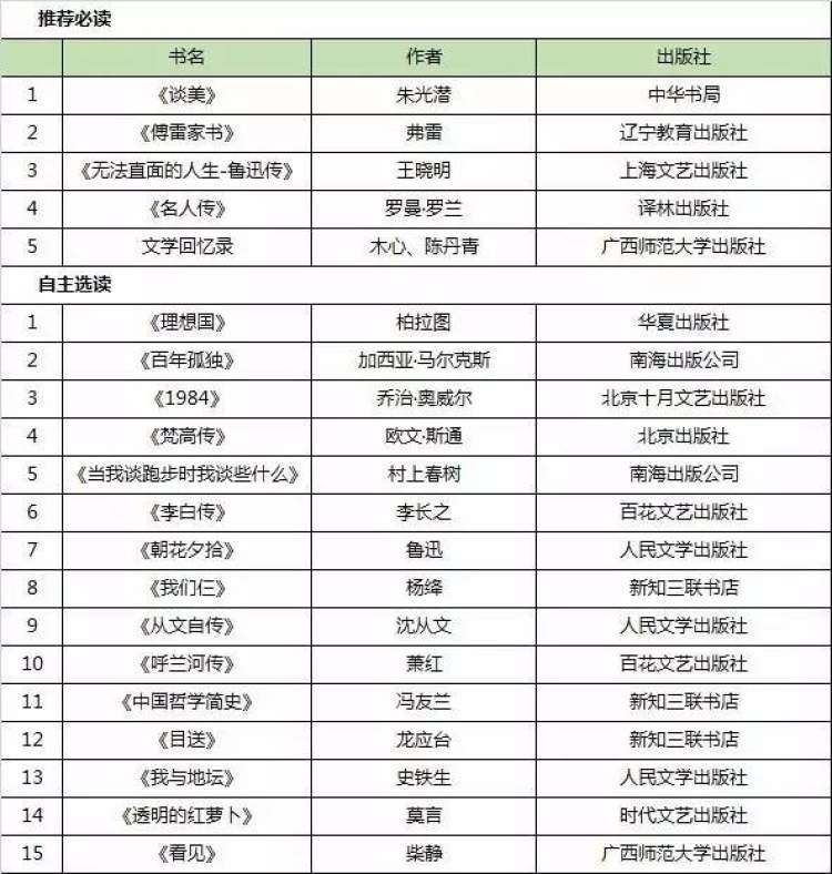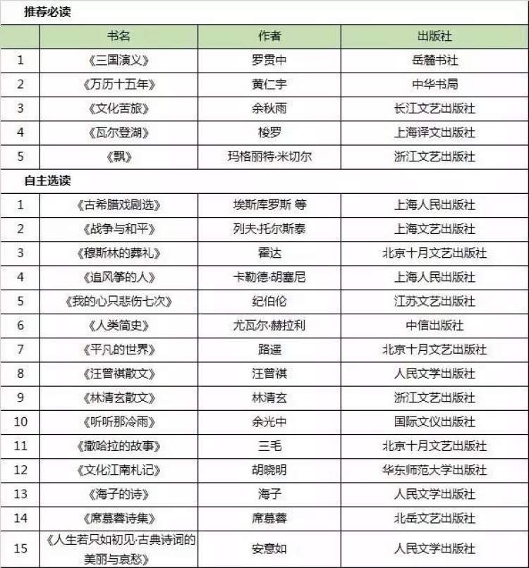 (注:本书单为华师大二附中校长在今年的自招讲座上推荐,家长拍照分享)