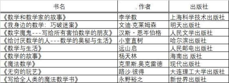 同时,也有学校推荐一些有关数学知识的书,帮助孩子拓宽眼界,培养数学兴趣。