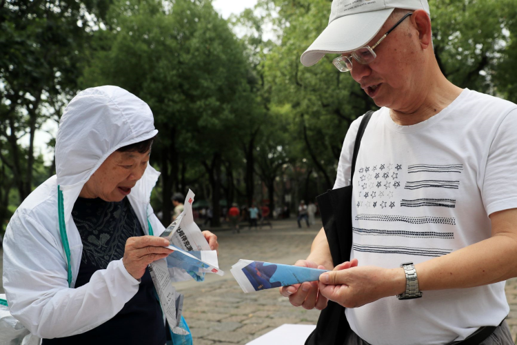 当天上午8时30分,鲁迅公园南门广场上人头攒动,虽然当天气温近35℃,但大家对活动的热情丝毫不减。活动原本只召集了40位市民参加比赛,结果当天赶来现场的人数远远多于40人,而且涵盖了“老、中、青、童”不同年龄段,有年轻气盛的小伙子、有精神矍铄的耄耋老人,还有在妈妈鼓励下前来参赛的小朋友。