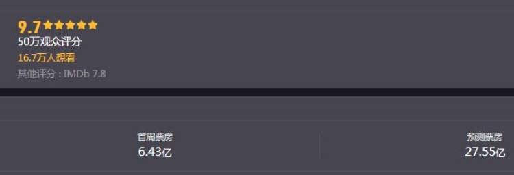 “魔童”票房口碑表现都相当不俗,截至7月29日发稿实时票房已超8亿元。猫眼专业版更为这部国产动画电影给出了高达27.55亿元的最终票房预测。