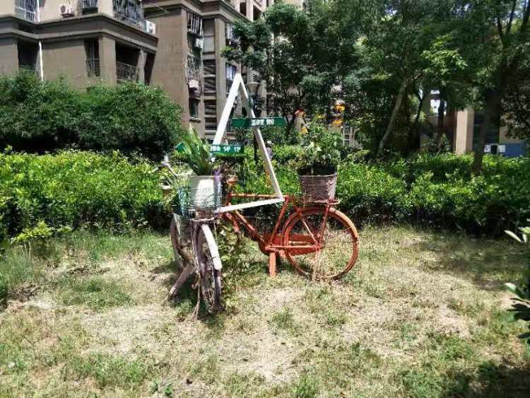 最终,在大伙集思广益下,王宇定下了“变废为宝”的解决方案——用废弃自行车装扮小区。