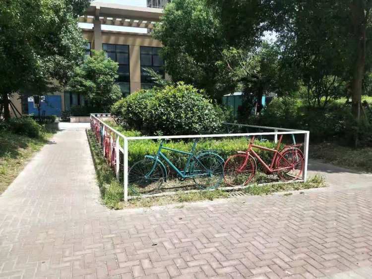 活动一经推出,小区“僵尸车”数量瞬间减量。置换活动整整持续了3个月,随后,居委会将收集来的废旧自行车统一运到大件垃圾停放处,然后再由请来的专业师傅进行统一的切割、除锈、打磨、焊接。打造成小区绿地护栏、指路牌等各种样式,再由小区居民一起喷漆上色。小区的孩子也参与进来,将废弃自行车涂抹上自己喜欢的颜色。五彩缤纷,整个小区突然有了生机。