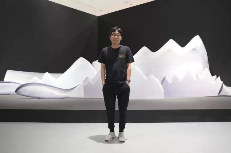 ■艺术家仇晓飞与其作品《废墟 2;木板着色》