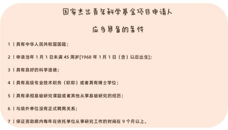 国家杰出青年科学基金项目申请人需具备以下条件: