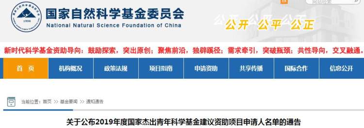 今日(2日),国家自然科技基金委员会公布了2019年度国家杰出青年科学基金建议资助项目申请人名单。