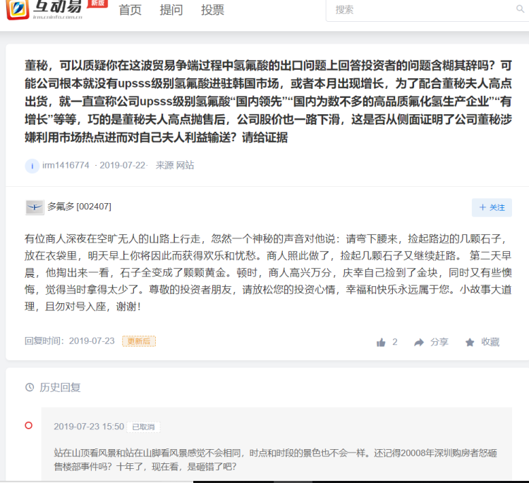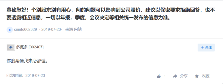 资本市场上,像多氟多这样“神回复”投资者的董秘不少。