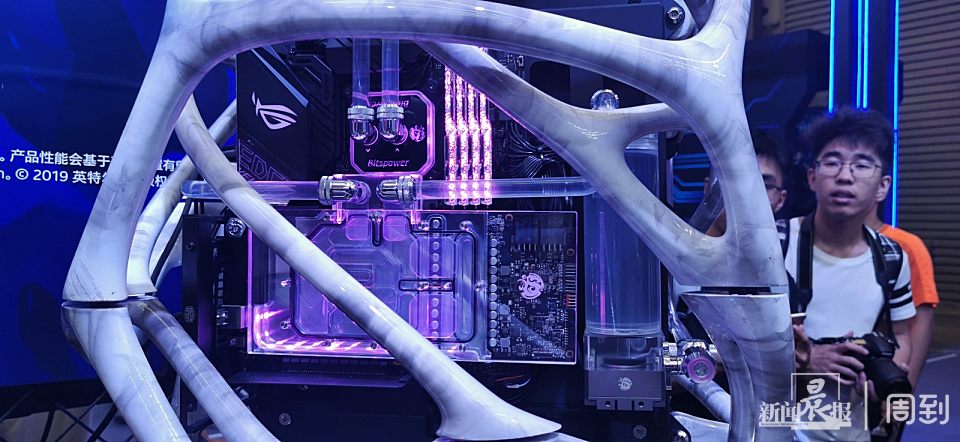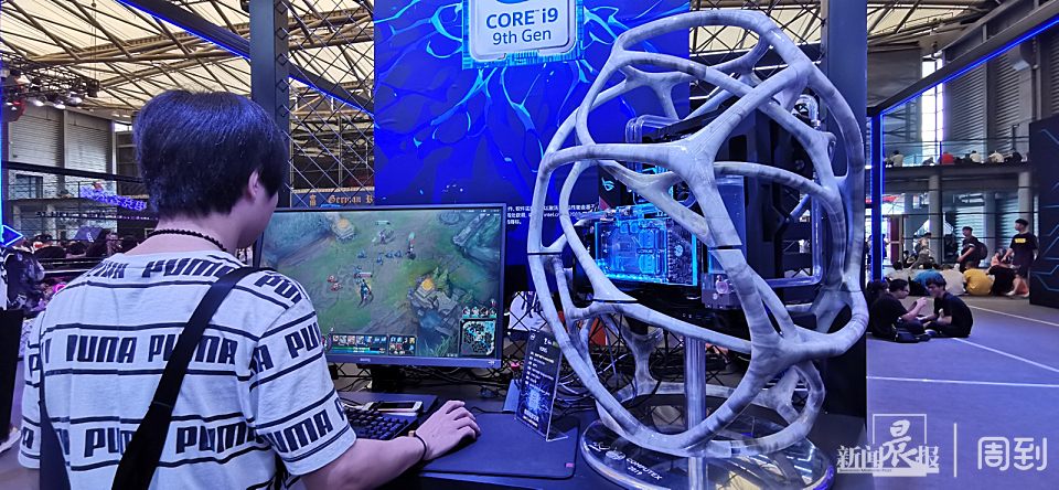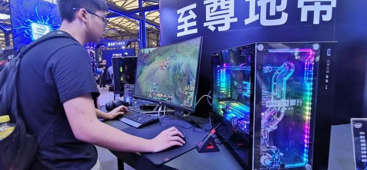 带来极佳的游戏体验,远不是电脑配置高那么简单,在Intel电竞主题馆,游戏电脑一般搭载酷睿i7 或i9的处理器,这还不是最吸引人的,相信让一众游戏玩家驻足欣赏,不忍心离开的,是主机。